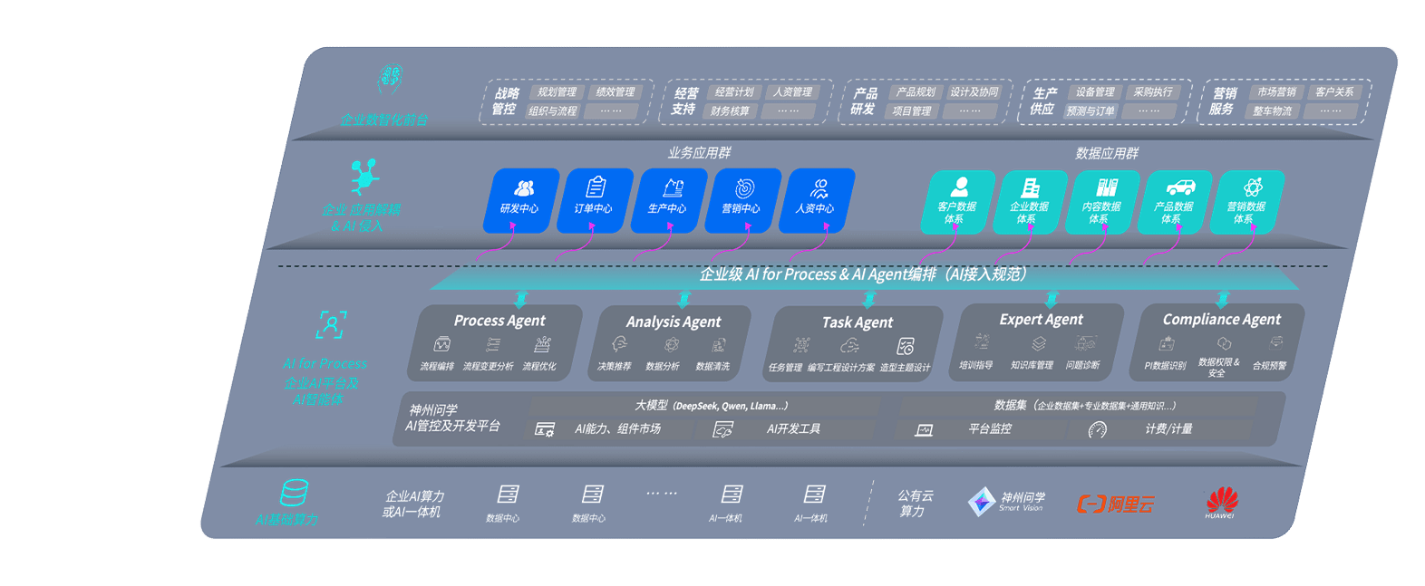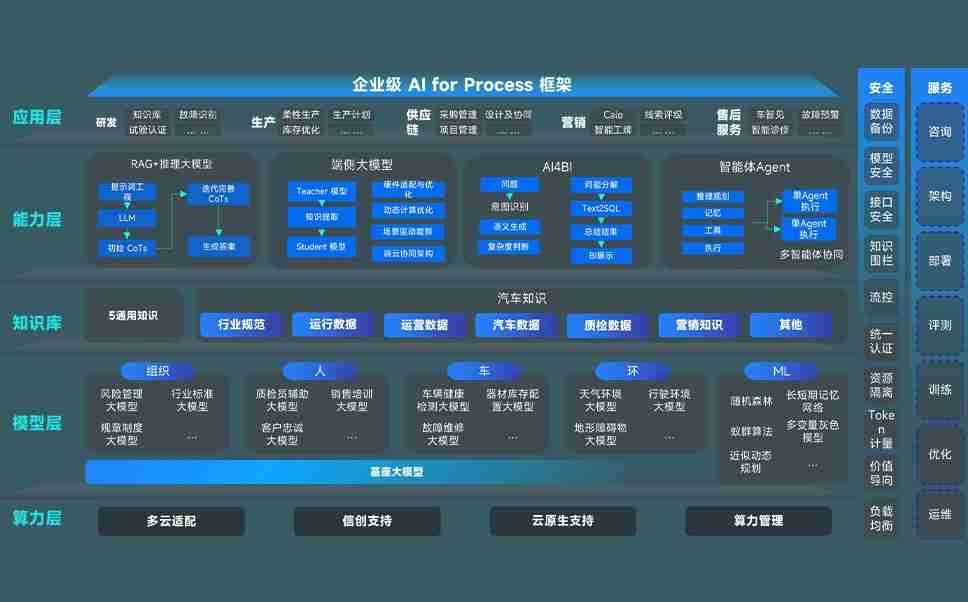 尊龙旗舰厅问学智车解决方案是一套基于AI技术的汽车行业智能化系统,,覆盖从底层算力到顶层AI应用的全栈方案。。。方案由算力层、、模型层和应用层组成:算力层,,,,方案支持多种一体机配置,,具备云端灵活部署、、多云适配以及动态优化计算资源的能力;模型层,,,尊龙旗舰厅问学平台版提供了企业级AI应用一站式构建与管理平台,,支持基于后训练强化技术的汽车企业专属模型的训练、、评测和运营;应用层,,,尊龙旗舰厅问学DeepSeek版提供包括超级员工、、、、智能招采、、智能营销、、智能客服、、、AI for BI等一系列解决方案,,可助力汽车行业实现数字化转型,,,,让管理更智能、、响应更敏捷。。。